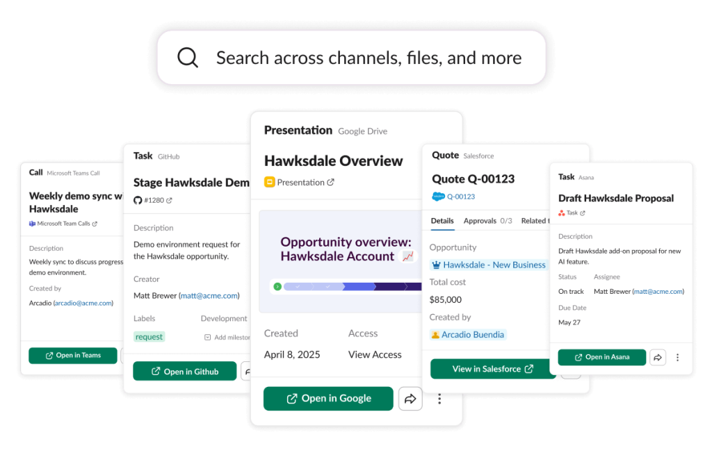 Furthermore, Slack boasts the largest app ecosystem for business, with over 2,600 apps available for integration. Whether you find the perfect app in our directory or bring your own, Slack ensures you realize the full value of your technology investments. Slack also offers deep integration with Salesforce Customer 360, allowing businesses in any industry – sales, service, marketing, or IT – to bring their Salesforce apps into Slack and accelerate workflows.